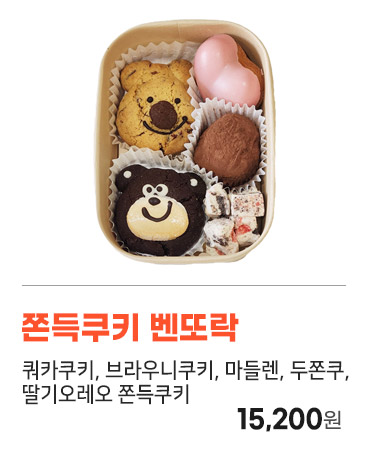 예약하기 문의하기 삐삐당 구움과자 답례품 메뉴 자체 스티커는 무료 서비스입니다. 창원 마산 진해 부산 김해 장유 가성비 있는 답례품으로 센스선물을 하세요. 벤또락A쿼카 피칸1개+초코프레첼8개3800원벤또락B쿼카 피칸1개+초코프레첼8개3800원벤또락C사브레쿠키 녹차&아몬드&초코3800원벤또락D곰들렌 + 초코프레첼4500원벤또락E곰들렌 + 사브레3800원벤또락F브라우니 쿠키 + 사브레3800원벤또락G브라우니쿠키+초코호두쿠키3800원벤또락H곰들렌+바닐라하트마들렌3800원벤또락I에그타르트+초코프레첼4300원벤또락J에그타르트+사브레4500원벤또락K쿼카 피칸1개+초코프레첼8개3800원에그타르트클래식&옥수수&꿀구마&무화과&초코3000원브라우니쿠키찌인~하고 촉촉한 곰돌이 로코 쿠키2500원초코 호두 쿠키르뱅 스타일의 왕 호랑이 쿠키3500원쫀득쿠키딸기오레오 쫀득쿠키 & 로투스프레첼 쫀득쿠키4800원프레첼 벤또락단짠 단짠 화이트와 다크 초코가 찍힌 프레첼3000원리본 프레첼결혼 답례품으로 인기 좋은 화이트&다크 초코가 찍힌 프레첼4500원음료 구디백벤또락 세트&음료5300원찰떡 음료구움찰떡 2종&곰들렌&음료6700원음료 곰브레 세트브라우니 쿠키&곰들렌&사브레3종&음료7300원꼬숩달달 세트호주정과&모나카칩&아몬드튀일3900원~5000원곰돌곰돌 세트브라우니쿠키&곰들렌&초코프레첼5400원에그타르트 세트A에그타르트&곰들렌&초코프레첼5900원에그타르트 세트B에그타르트&브라우니쿠키5900원다모아 벤또락 세트사브레쿠키&브라우니쿠키&초코프레첼&에그타르트&곰들렌10400원다모아 상자A곰들렌&브라운니쿠키&초코프레첼&사브레11000원다모아 상자B곰들렌&브라운니쿠키&초코프레첼&사브레14000원호두정과150g 9000원모나카칩8개입 12000원2구세트21000원